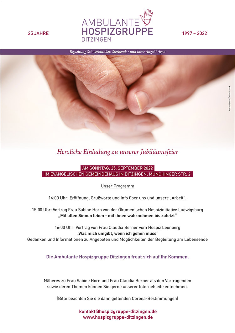 Kurzfassungen der Vorträge im Rahmen des Jubiläums 25 Jahre Hospizgruppe Ditzingen am 25. September 2022 im Evangelischen Gemeindehaus Ditzingen